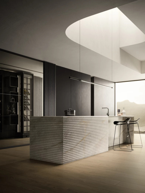Ściana ze spieku kwarcowego: Appennino Silk może być użyty jako efektowny element dekoracyjny na ścianach, dodając wnętrzu elegancji.