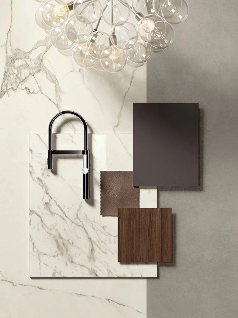 Calacatta Extra charakteryzuje się kompaktowym, lśniącym białym tłem, na którym widoczne są wyraziste szare żyłki z subtelnymi złotymi refleksami. Taka kolorystyka nadaje powierzchni elegancki i wyrafinowany charakter, który doskonale komponuje się zarówno z klasycznymi, jak i nowoczesnymi wnętrzami. Dzięki swojej uniwersalności, spiek kwarcowy Calacatta Extra harmonijnie współgra z innymi materiałami i stylami aranżacji.