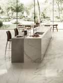 Calacatta Extra wykorzystuje innowacyjną technologię Natura-Vein Tech, która pozwala na uzyskanie efektu ciągłości wzoru na całej grubości płyty, co sprawia, że powierzchnia wygląda jak naturalny kamień. Dodatkowo, dostępność wzoru Bookmatch umożliwia tworzenie lustrzanych odbić wzoru, co jest szczególnie efektowne na dużych powierzchniach, takich jak ściany czy blaty.
