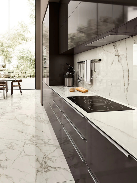 • Blat kuchenny ze spieku kwarcowego: Odporność na wysokie temperatury, zarysowania oraz łatwość w utrzymaniu czystości sprawiają, że Calacatta Extra jest doskonałym materiałem na blaty kuchenne.