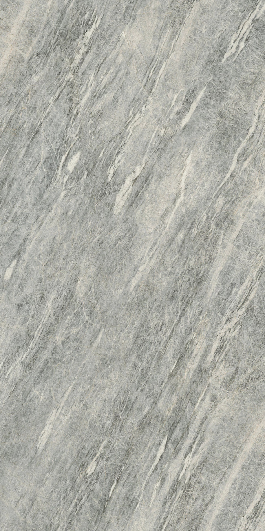 Sky Stone Bookmatch Silk to spiek kwarcowy, który zachwyca delikatnością odcieni i subtelną strukturą przypominającą naturalny kamień. Kolorystyka płyty oparta jest na chłodnych, eleganckich szarościach o nieregularnym rysunku, który dodaje głębi i dynamiki całej powierzchni. Wykończenie Silk nadaje powierzchni satynowy połysk – aksamitny w dotyku, lecz nieodbijający światła w sposób intensywny, dzięki czemu całość pozostaje stonowana i szlachetna.