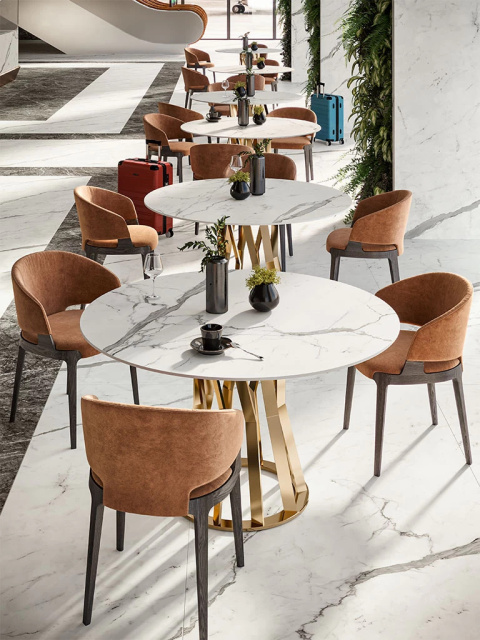Naturalny wygląd – Inspirowany marmurem Statuario, spiek charakteryzuje się bogatą kolorystyką z białymi, szarymi i złotymi żyłkami, co nadaje powierzchni luksusowy, naturalny wygląd.