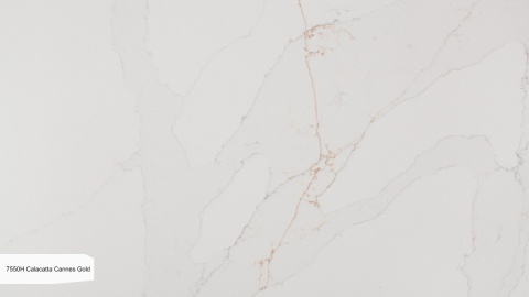 Avant Quartz Calacatta Cannes Gold to biały konglomerat kwarcowy z jasnoszarą mgiełką, szarymi żyłkami oraz złoto-brązowymi akcentami, wykończony w matowej fakturze. Grubość 20 mm i naturalna powierzchnia czynią go idealnym wyborem do nowoczesnych wnętrz