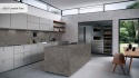 Caesarstone Coastal Grey to wyrazisty konglomerat kwarcowy z kolekcji Supernatural, który łączy ciemną, głęboką szarość z intensywnym, nieregularnym żyłkowaniem w odcieniach bieli i jasnej gliny. Jego surowa, inspirowana naturą estetyka nadaje wnętrzom charakteru i głębi. Polerowane wykończenie dodaje szlachetności, a jednocześnie wzmacnia naturalny, kamienny efekt. Produkt dostępny jest w grubości 20 mm i formacie Normal.