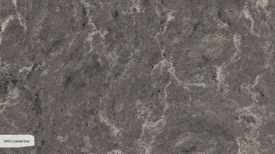 Caesarstone Coastal Grey to ciemnoszary konglomerat kwarcowy o wyrazistym, jasnym żyłkowaniu i naturalnym, kamiennym charakterze. Polerowane wykończenie nadaje mu elegancki połysk. Trwały, odporny i efektowny – idealny do wnętrz nowoczesnych i industrialnych.