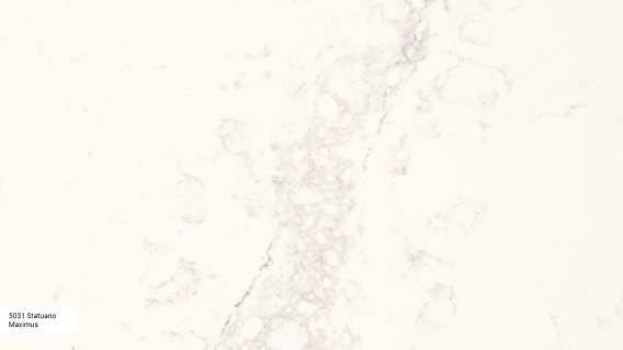 Caesarstone Statuario Maximus to wyrafinowany konglomerat kwarcowy z kolekcji Supernatural, nawiązujący estetyką do klasycznego włoskiego marmuru Statuario. Białe, czyste tło przecinają szerokie, dynamiczne żyły w odcieniach szarości i taupe, które tworzą spektakularny, naturalny rysunek. Polerowane wykończenie nadaje powierzchni intensywny połysk, podkreślając głębię wzoru. Produkt dostępny wyłącznie w formacie Jumbo XL, w grubości 20 mm.