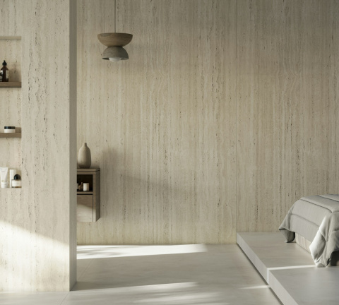 Dekton Nebu to spiek kwarcowy o delikatnym beżowym tle, poprzecinanym pionowymi, stonowanymi żyłami w odcieniach kremu i szarości. Inspiracją dla tego wzoru był naturalny wapień z tunezyjskich wybrzeży, co nadaje mu autentyczny, subtelnie rustykalny charakter, bez utraty nowoczesnej elegancji. Strukturalne wykończenie powierzchni podkreśla naturalny wygląd i sprawia, że materiał nie tylko wygląda, ale i „czuje się” jak kamień.