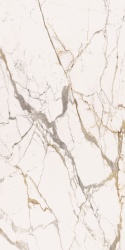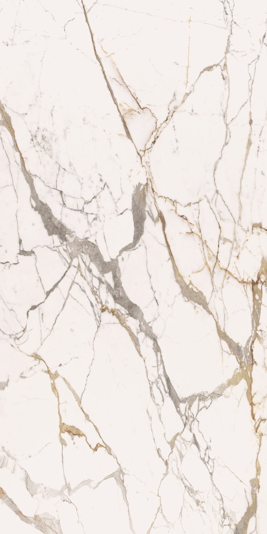 Delikatne, złote żyłkowanie tworzy harmonijny, elegancki rysunek. Możliwość zastosowania układu bookmatch pozwala na uzyskanie symetrycznych, lustrzanych kompozycji, które podnoszą prestiż wnętrza.