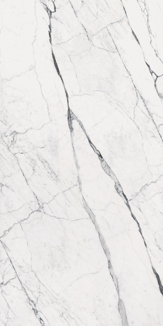 Dzięki dużemu formatowi płyt (160x320 cm), łatwo uzyskać efekt jednolitej, spójnej powierzchni o wyjątkowych walorach estetycznych. Eternal White oferuje również możliwość zastosowania układu bookmatch, który umożliwia tworzenie symetrycznych, lustrzanych kompozycji o spektakularnym wyglądzie.