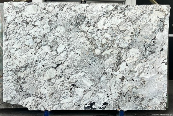 Cassis to granit naturalny o jasnej, dekoracyjnej kolorystyce. Na powierzchni dominują odcienie bieli i srebrzystej szarości, urozmaicone ciemniejszymi akcentami mineralnymi. Duże, nieregularne kryształy tworzą charakterystyczny, mozaikowy rysunek, który nadaje kamieniowi niepowtarzalny, elegancki wygląd.