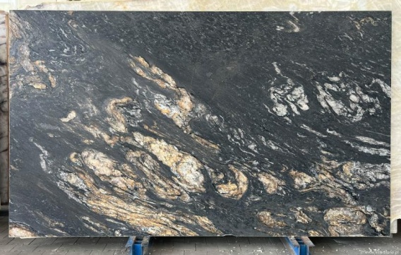 Cosmic Gold to granit dekoracyjny o intensywnym, ciemnym tle przeplatanym złotymi, miodowymi i beżowymi smugami oraz refleksami. Wzór cechuje się dynamicznym układem żyłek i kontrastów, co nadaje materiałowi elegancji i dekoracyjnej wyrazistości.