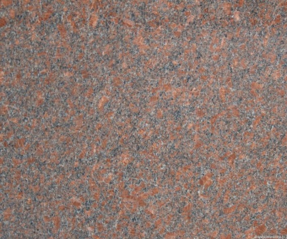 Granit Santiago Red polerowany to elegancki kamień naturalny o ciepłej, czerwonawo-brązowej barwie z drobnoziarnistą, równomierną strukturą. Połyskujące kryształy oraz subtelne szare i ciemniejsze wtrącenia tworzą spokojny, ale wyrazisty rysunek. Dzięki wykończeniu w wysokim połysku (poler) powierzchnia jest idealnie gładka, łatwa do czyszczenia i pięknie odbija światło, podkreślając głębię koloru.