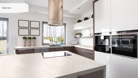 Keralini Pulpis Ivory to materiał o subtelnej kremowej barwie, która subtelnie naśladuje odcienie naturalnego kamienia. Wykończenie powierzchni w naturalnej, matowej wersji podkreśla ciepły ton spieku, tworząc elegancką i spokojną atmosferę. Dzięki temu spiek kwarcowy Pulpis Ivory świetnie komponuje się z różnorodnymi elementami wnętrz, takimi jak drewno, metal czy szkło, wprowadzając harmonię i spokój do każdego pomieszczenia.