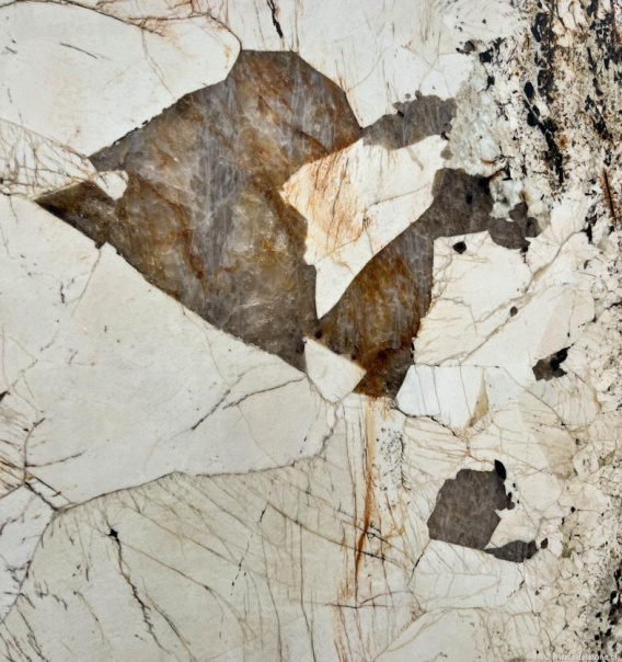 Patagonia Light 20 mm w wykończeniu polerowanym to luksusowy kamień o jasnej, mozaikowej strukturze, w której przeplatają się kremowe i białe pola z półprzezroczystymi fragmentami kwarcu oraz ciemniejszymi, kontrastowymi minerałami. Poler wydobywa głębię kolorów i nadaje powierzchni elegancki połysk. Idealny na blaty, ściany, wyspy i efektowne panele dekoracyjne — zwłaszcza z podświetleniem, które spektakularnie uwydatnia kwarcowe partie.