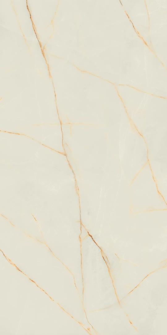 Laminam Diamond Cristallo Gold BM Caress zachwyca luksusowym wyglądem inspirowanym naturalnym kryształem z eleganckimi, złotymi żyłami przechodzącymi przez półprzezroczystą, mlecznobiałą powierzchnię. Wersja Book Match podkreśla symetrię wzoru, tworząc efekt artystycznej tafli kamienia, natomiast wykończenie Caress nadaje powierzchni aksamitną, jedwabistą w dotyku fakturę z subtelnym, rozproszonym połyskiem – wrażenie ekskluzywności i lekkości w jednym.