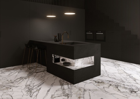 Infinity Black prezentuje czystą, nasyconą czerń, pozbawioną kontrastowego żyłkowania. To gładka, jednolita powierzchnia, która tworzy wrażenie głębi i przestrzeni. Doskonale odnajduje się w stylistyce minimalistycznej, industrialnej i modernistycznej. Czerń tej klasy doskonale komponuje się z bielą, betonem, metalami i drewnem.