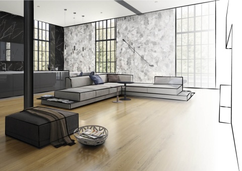 Powierzchnia Sublime Cloud utrzymana jest w jasnoszarej tonacji z delikatnym żyłkowaniem, inspirowanym strukturą kamieni osadowych. Brak wyrazistego kontrastu sprawia, że wzór jest spokojny i harmonijny – doskonały do wnętrz skandynawskich, japandi, klasycznych i nowoczesnych. Kolor łatwo łączy się z bielą, drewnem, czernią oraz metalami.