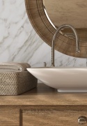 Bookmatch to technika zestawienia dwóch płyt w sposób lustrzany, dzięki czemu ich wzór układa się w efektowną, symetryczną kompozycję. W dekorze Neolith Calacatta Royale efekt ten podkreśla naturalne żyłkowanie i nadaje całości ekskluzywnego charakteru. Bookmatch dostępny jest w grubościach 6 mm, 12 mm i 20 mm, co czyni go idealnym wyborem do aranżacji ściennych, okładzin nadblatowych, wysp kuchennych i przestrzeni reprezentacyjnych.