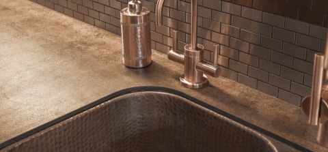Kamień spiekany Neolith Iron Copper grubości 3 mm. Wykończenie satyna.
