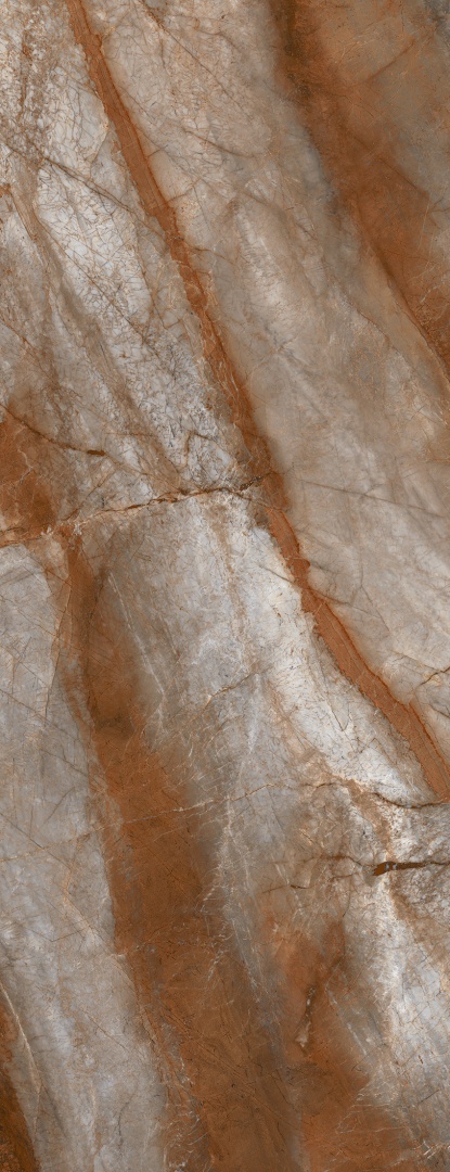 Dzięki technologii TRI-D, spiek zyskuje efekt trójwymiarowej głębi i naturalnego światłocienia. Subtelne refleksy, różnice tonalne i strukturalne odwzorowują wygląd utlenionego kwarcytu z fotograficzną precyzją. Wykończenie Soft dodaje powierzchni jedwabistej gładkości, eleganckiego połysku i wyjątkowego komfortu użytkowania.