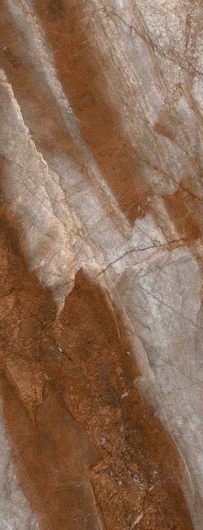 Spiek kwarcowy Paradyż Abstract TRI-D Rust to spektakularne połączenie naturalnej ekspresji i nowoczesnej technologii. Jego kompozycja inspirowana jest minerałami i utlenionym metalem – ciepłe rdzawe tony przeplatają się tu z szarością i srebrzystymi przejściami, tworząc unikalny, żywy rysunek. To powierzchnia, która emanuje siłą natury, a jednocześnie zachowuje elegancję kamienia szlachetnego.