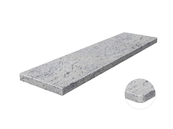 Parapet granitowy Kashmir White FALCO – jasny kamień o delikatnym, biało-szarym wzorze. Grubość 2 lub 3 cm, minimalna szerokość do wyceny 20 cm. Dodatkowe opcje: narożniki, kapinos, cięcie pod ciepły montaż, poler od spodu. FALCO – producent parapetów granitowych z dostawą na terenie całej Polski.