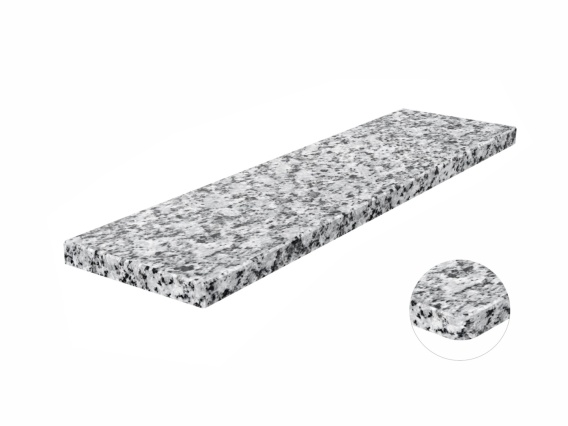 Parapet granitowy Polski Strzegom FALCO – klasyczny, jasnoszary granit o drobnoziarnistej strukturze. Dostępny w grubościach 2 i 3 cm, minimalna szerokość do wyceny 20 cm. Opcje dodatkowe: narożniki, kapinos, cięcie pod ciepły montaż, poler od spodu. FALCO – parapety granitowe z dostawą w całej Polsce.