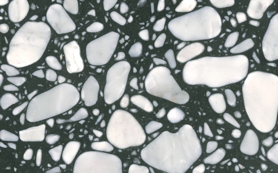 Santamargherita Palladio Moro to wyrazisty konglomerat marmurowy o głębokiej, grafitowo-czarnej bazie, w której zatopione są duże i średnie wtrącenia marmurowe w odcieniach bieli. Kontrast między ciemnym tłem a jasnymi elementami nadaje mu elegancki, luksusowy charakter i sprawia, że staje się centralnym punktem każdej aranżacji.
