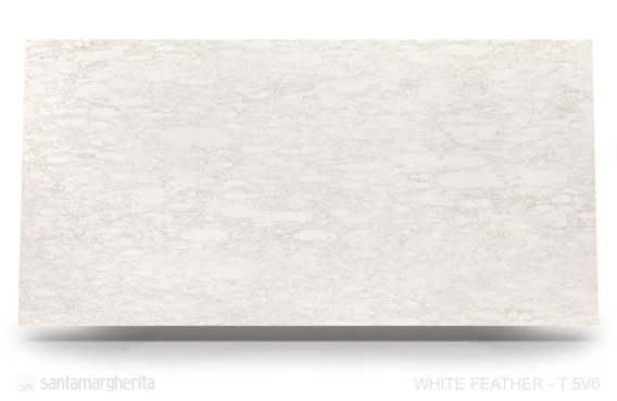 Santamargherita White Feather to luksusowy konglomerat kwarcowy o subtelnym, wyrafinowanym wyglądzie, łączący nowoczesną elegancję z ponadczasową estetyką. Jego wyjątkowa powierzchnia została zaprojektowana z myślą o wnętrzach, które wymagają zarówno wysokiej trwałości, jak i niepowtarzalnego charakteru. Dostępny w wariantach grubości 2 cm oraz 3 cm, w wykończeniu polerowanym, materiał ten idealnie sprawdza się w różnorodnych zastosowaniach – od blatów kuchennych, przez okładziny ścienne, po elementy dekoracyjne.