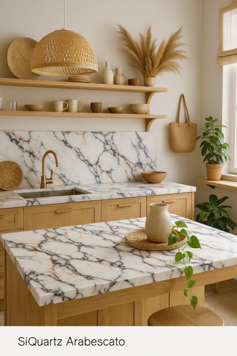 SiQuartz Arabescato 3 cm satyna to doskonały wybór dla osób, które cenią połączenie włoskiego stylu, matowego wykończenia i wyrazistego wzoru. Materiał gwarantuje luksus, trwałość i efekt „wow” w każdej przestrzeni.