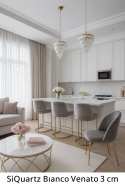 SiQuartz Bianco Venato 2 cm to subtelna i lekka wersja wzoru Bianco Venato, dostępna w formacie 321 × 162 cm oraz 305 × 140 cm, z polerowaną powierzchnią zapewniającą elegancki połysk i lekkość montażu.
