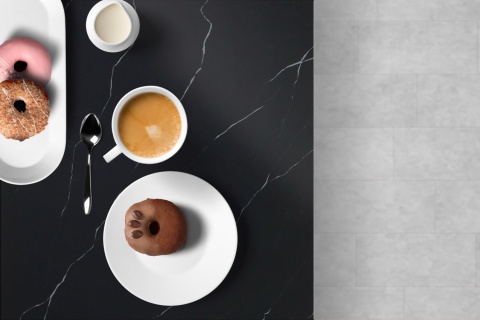 SiQuartz Marquina Delicato to konglomerat kwarcytowy, który przyciąga wzrok intensywną czernią tła i delikatnym, jasnym użyleniem w tonacjach bieli oraz szarości. Wersja o grubości 3 cm z wykończeniem polerowanym wyróżnia się głębią koloru i eleganckim, lśniącym wykończeniem, idealnym do luksusowych wnętrz o wyrazistym charakterze. Inspiracją dla tego wzoru jest klasyczny marmur Marquina, jednak tutaj w bardziej subtelnej, nowoczesnej odsłonie.