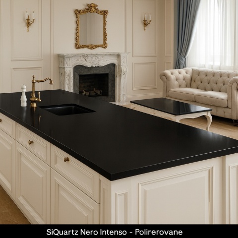 Satynowe wykończenie SiQuartz Nero Intenso 3 cm to matowa, czysta czerń o wyjątkowo miękkim wyrazie. Płyta doskonale wpisuje się w projekty nowoczesnych kuchni, łazienek, lad recepcyjnych i zabudów meblowych. Grubość 3 cm podkreśla elegancję i nadaje solidności we wnętrzach klasy premium.