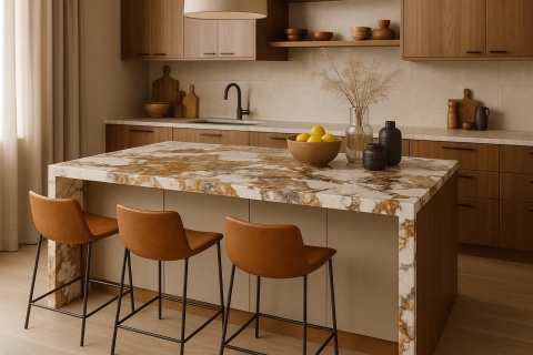 Kamień naturalny to materiał unikalny – każdy blat czy płytka różni się rysunkiem, kolorem i strukturą, co czyni go wyjątkowym i niepowtarzalnym. Naturalne cechy, takie jak mikrospękania, żyłkowania czy różnice kolorystyczne, podkreślają jego autentyczne piękno. W zależności od rodzaju kamień może chłonąć płyny, reagować na kwasy lub być podatny na drobne odpryski, dlatego wymaga regularnej impregnacji. Odpowiednia pielęgnacja pozwala zachować jego trwałość i elegancję przez wiele lat.