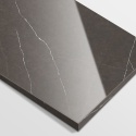 Płyta utrzymana jest w tonacji szlachetnego grafitu, przeciętego nieregularnymi, jasnoszarymi żyłami, które przypominają naturalne pęknięcia w strukturze kamienia. Polerowana powierzchnia wzmacnia ten efekt, uwypuklając kontrast między tłem a użyleniem i dodając całości eleganckiego połysku. Kolor idealny do wnętrz utrzymanych w stylu modern classic, soft loft, japandi czy minimalistycznym.