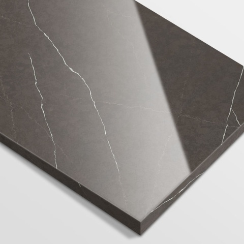 SiQuartz Pietra Grey 3 cm w wykończeniu polerowanym to prestiżowy konglomerat kwarcytowy, inspirowany strukturą naturalnego marmuru Pietra Grey – kamienia o eleganckiej, ciemnoszarej bazie i subtelnych, jasnych żyłach. Polerowana powierzchnia wydobywa głębię koloru i podkreśla dynamiczne wzory, dodając materiałowi luksusowego wykończenia i doskonałego połysku.