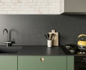 Silestone Cinder Craze to konglomerat w głębokim, ciemnoszarym odcieniu z subtelnym, marmurowym użyłkowaniem i delikatnymi akcentami. Jego barwa przywodzi na myśl naturalny kamień, nadając wnętrzom wyrazistości, nowoczesnego stylu i prestiżowej elegancji. To propozycja idealna dla projektów, w których liczy się zarówno trwałość, jak i ponadczasowy wygląd.