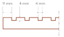 Wariant GV3 wyróżnia się bardziej wyrafinowanym ryflowaniem: odstęp pomiędzy rowkami wynosi 11 mm, a szerokość ryflowania to 4 mm przy głębokości 4 mm. Każda płyta posiada 34 rowki, co daje efekt gęstej i rytmicznej struktury. Płytka, podobnie jak GV2, zaczyna się od gładkiego fragmentu i kończy ryflowaniem, jednak jej proporcje sprawiają, że całość prezentuje się bardziej nowocześnie i dekoracyjnie.