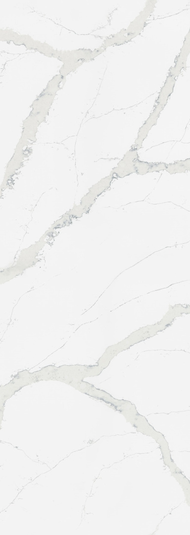 Calacatta Pastino to harmonijne połączenie łagodnej, ciepłej bieli z delikatnymi, ale zdecydowanymi szarymi żyłami, które nadają płycie głębi i struktury. Wzór żyłkowania rozciąga się nieregularnie, tworząc efekt płynności i naturalności, który idealnie oddaje charakter luksusowego marmuru. Dzięki temu materiał świetnie wpisuje się zarówno w przestrzenie klasyczne, jak i nowoczesne.