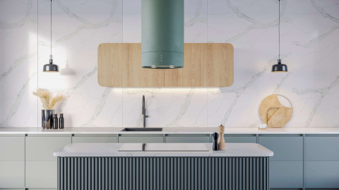 Dzięki wysokim parametrom użytkowym i dostępności w grubościach 20 mm oraz 30 mm, TechniStone® Calacatta Pastino to materiał wszechstronny, sprawdzający się w najbardziej wymagających realizacjach: