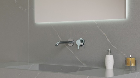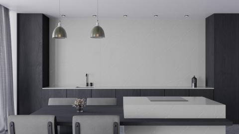 Imagine Grey od TechniStone to kwintesencja nowoczesnego podejścia do wzornictwa i architektury wnętrz. Ten konglomerat kwarcowy w odcieniach grafitowej szarości z delikatnym, białym żyłkowaniem wyróżnia się eleganckim charakterem inspirowanym naturalnym kamieniem. Jego uniwersalna kolorystyka doskonale współgra z nowoczesnymi, minimalistycznymi przestrzeniami, jak i z bardziej klasycznymi aranżacjami.