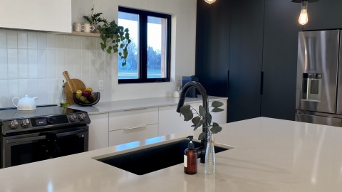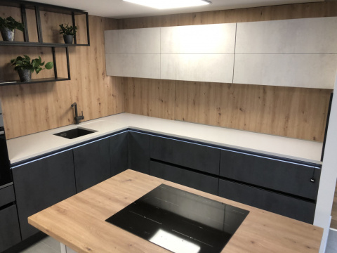 • Blat kuchenny z konglomeratu kwarcowego – trwały, higieniczny i odporny na działanie temperatury oraz środków czystości.