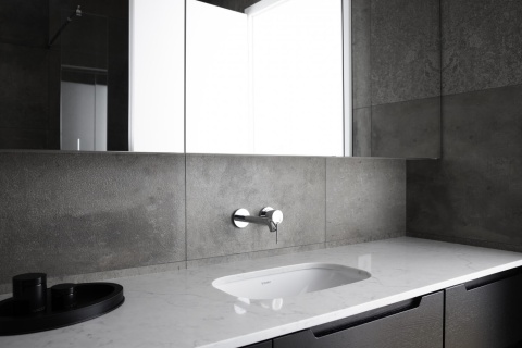• Blaty łazienkowe z konglomeratu kamiennego – higieniczne i odporne na wilgoć.