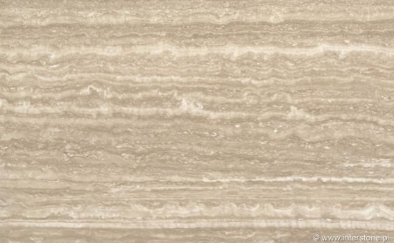 Trawertyn Romano Classico w wykończeniu polerowanym (polished) to jedna z najbardziej eleganckich odsłon tego kamienia naturalnego. Powierzchnia o wysokim połysku podkreśla jego charakterystyczne beżowo-piaskowe odcienie, naturalne warstwowanie oraz delikatne różnice tonalne. Układ poziomych pasm jest bardziej widoczny niż w wersji szczotkowanej, a połysk wydobywa głębię barwy i naturalne kontrasty.