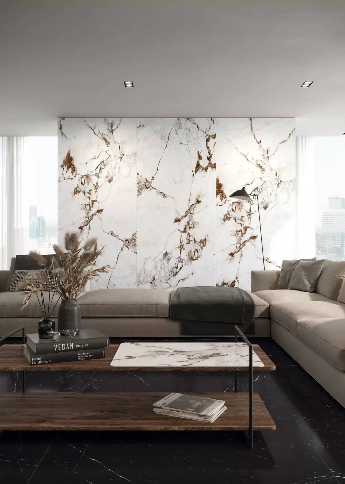 Florim Stone Marble Capraia występuje w dwóch grubościach: 6 mm oraz 12 mm. Każda z nich posiada inne zastosowania, co znacznie poszerza możliwości projektowe.