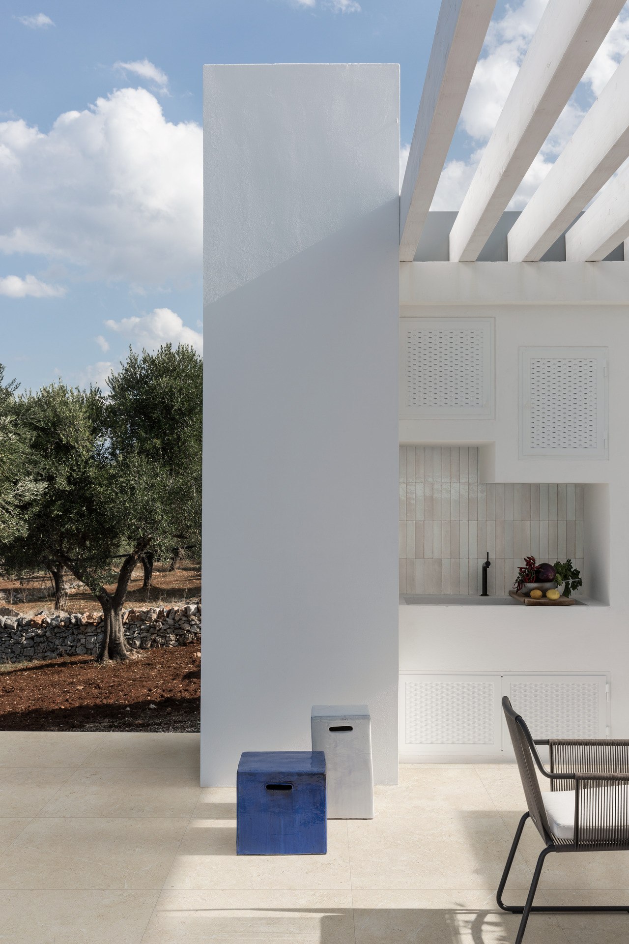 - Zabudowana kuchnia z grillem i zlewem – z pełnym blatem roboczym z spieku kwarcowego, odpornego na działanie tłuszczu i wody.