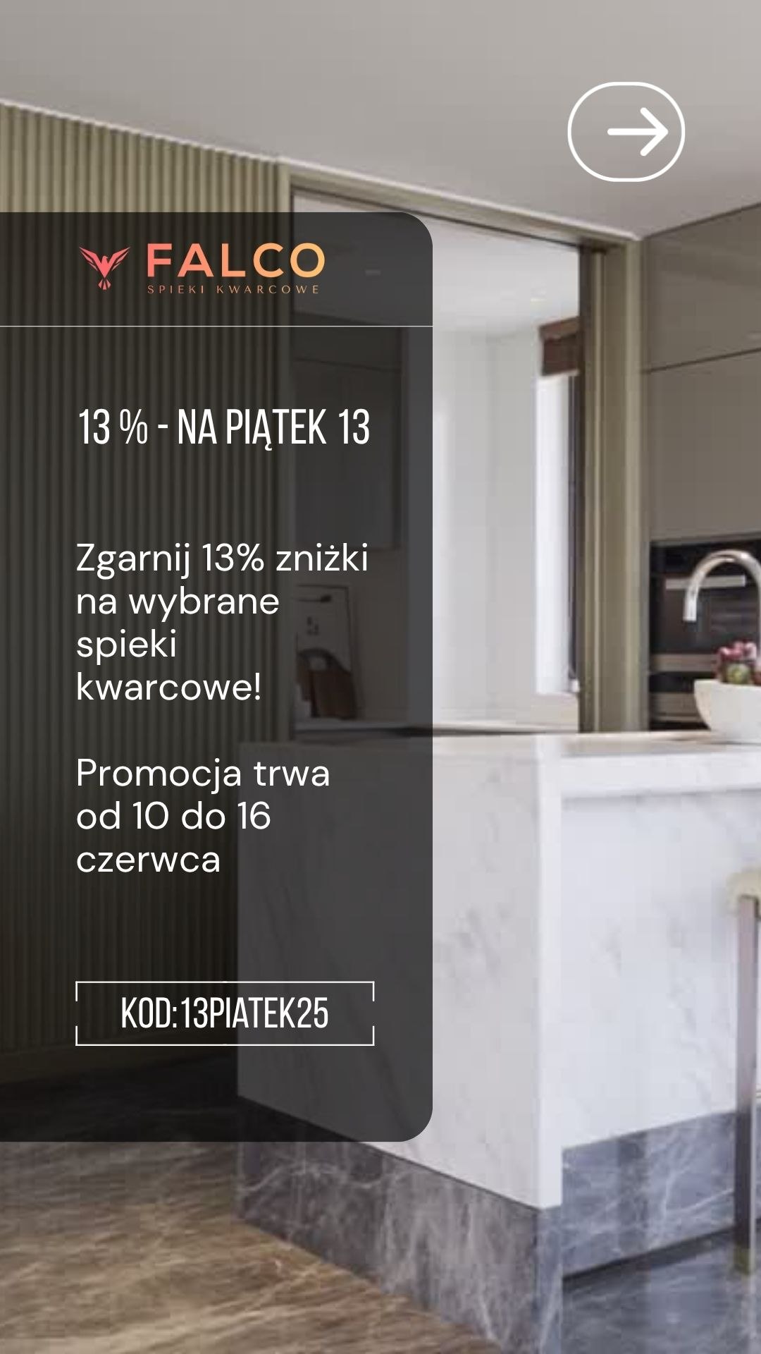13% zniżki obejmuje -spieki kwarcowe i konglomeraty kwarcowe oraz wybrane płytki z kolekcji premium (np. edycje specjalne inspirowane Japonią, Ukiyo itp.). Nie dotyczy pozostałych produktów ani akcesoriów.