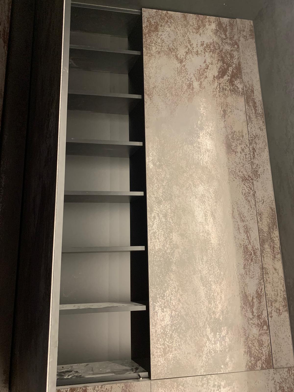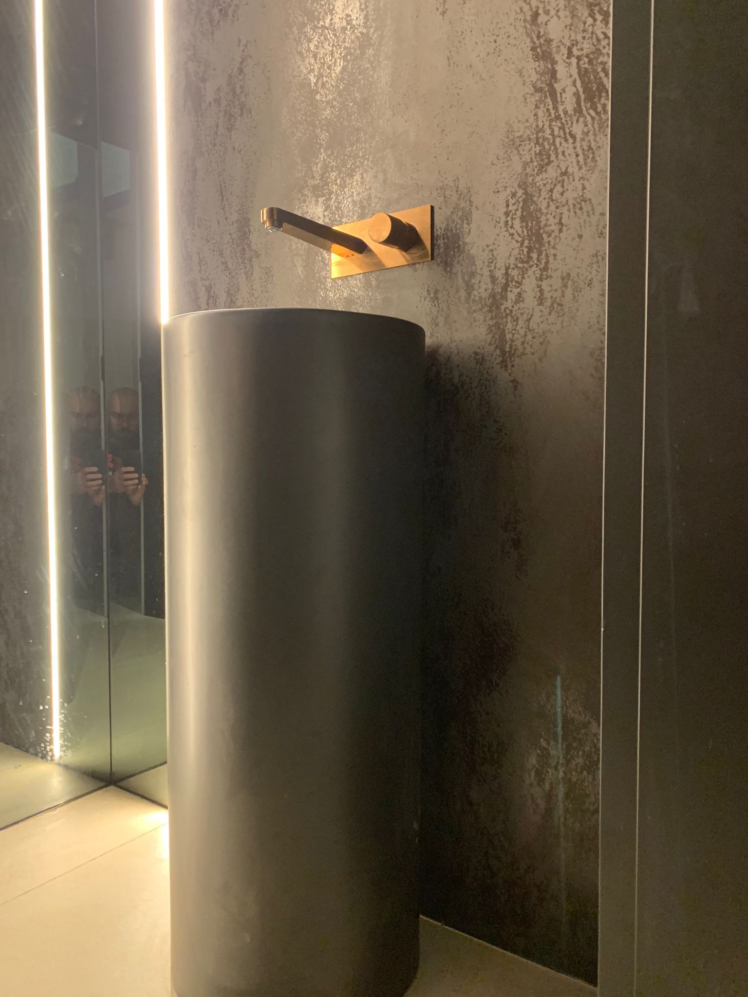 FALCO zrealizowało niedawno wyjątkowy projekt w łazience klienta, wykorzystując spiek kwarcowy Laminam OXIDE NERO o matowym wykończeniu i grubości 3 mm. Ten nowoczesny materiał posłużył do wykończenia zarówno ścian, jak i podłogi, nadając wnętrzu elegancki i nowoczesny charakter. Szczególną uwagę zwrócono na okładziny frontów otwieranej szafki łazienkowej, co świadczy o dbałości o każdy detal.